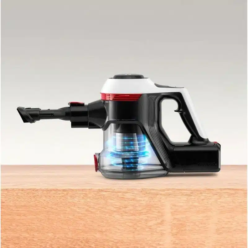 Incluye accesorios prácticos y versátiles, como una herramienta larga para hendiduras y esquinas, un cepillo 2 en 1 para muebles y un soporte para montaje en pared, que permiten una limpieza completa y un almacenamiento ordenado.