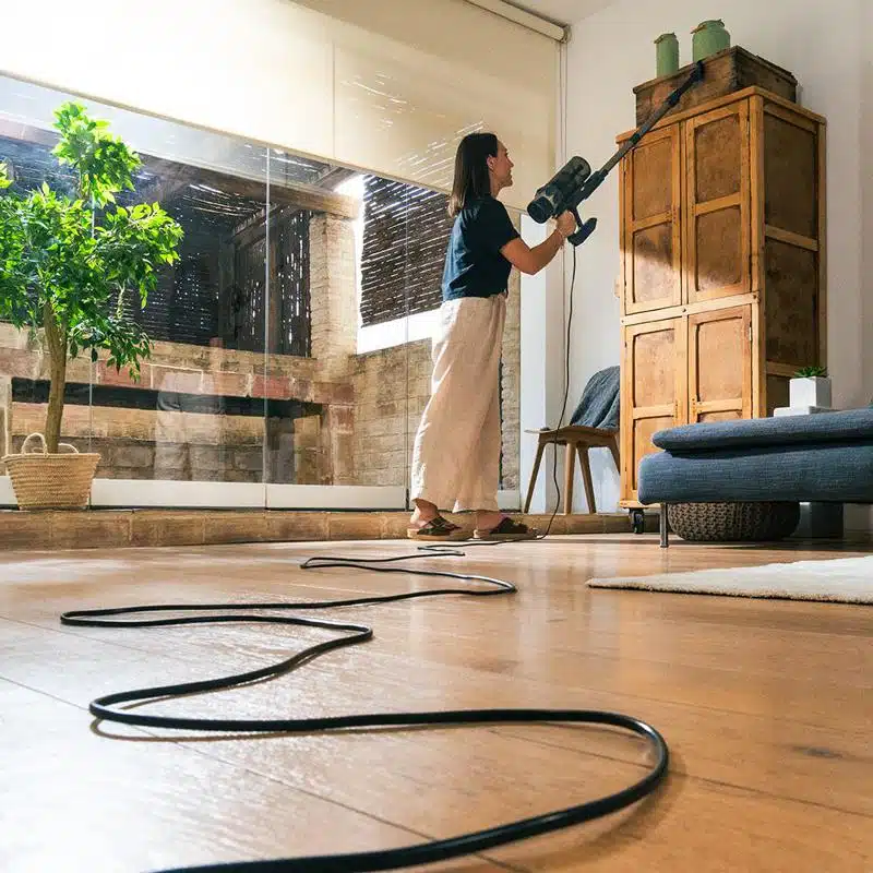 - Radio de acción de 8 metros. Cable XXL: limpia cada estancia sin necesidad de tener que cambiar de enchufe. Recoge cables en el propio aspirador.
