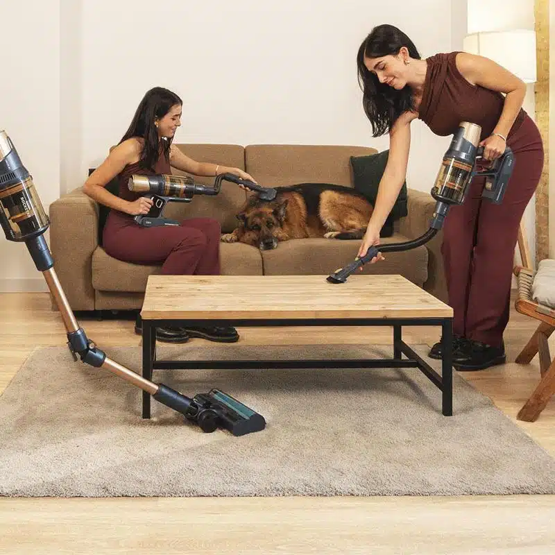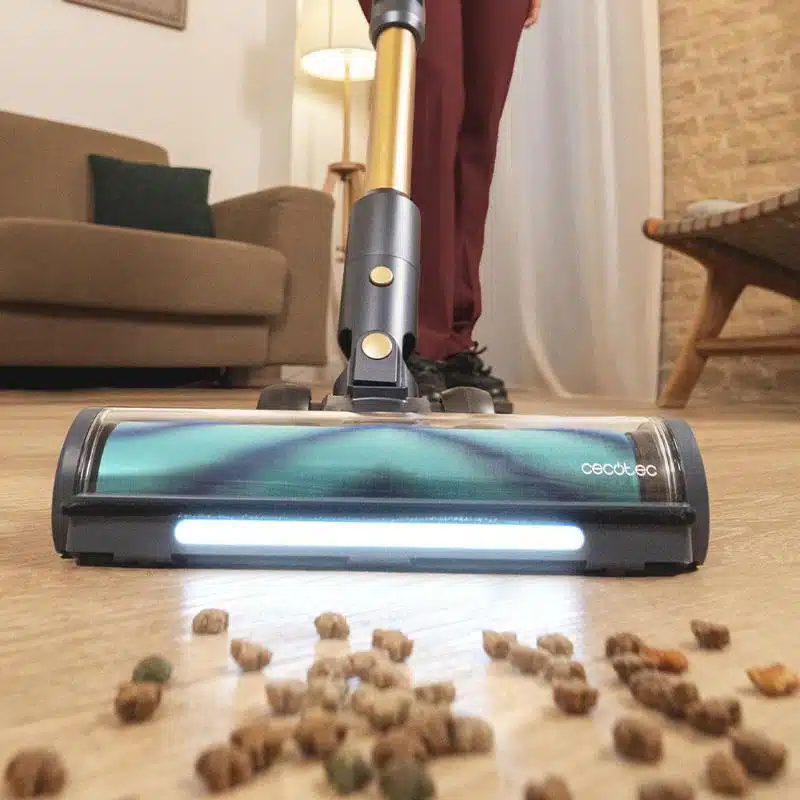 - Aspira más en menos tiempo* y sin enredos. Cepillo HairLess XL: cubre más área en cada pasada, atrapando todo tipo de suciedad y evitando enredos gracias a su diseño en forma de “V” que elimina los pelos y reduce la limpieza manual del cepillo. Además, el diseño dentado del interior del pie de aspiración permite cortar los pelos enredados, evitando atascos y manteniendo el cepillo limpio por más tiempo. *Doble de área de aspirado respecto a Rockstar 1500.