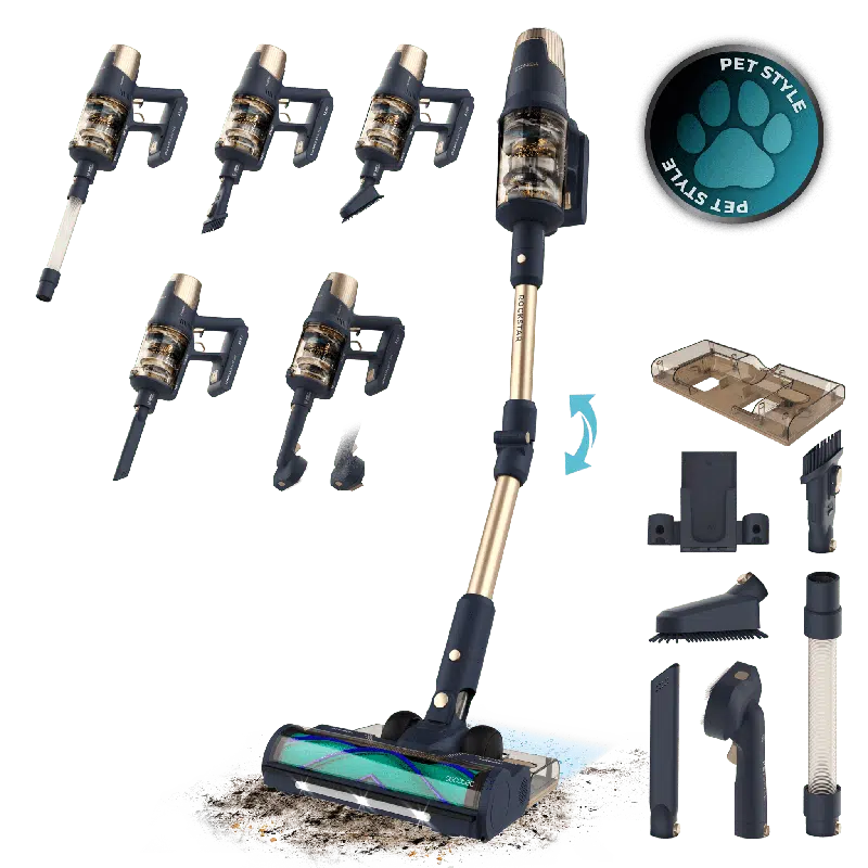 - Cepilla y aspira el pelo suelto de tu mascota. Pet Style: cepillo que penetra en el pelaje, atrapa el pelo suelto y lo aspira directamente para evitar que acabe en el suelo.