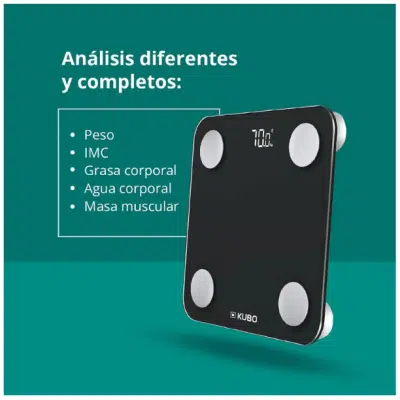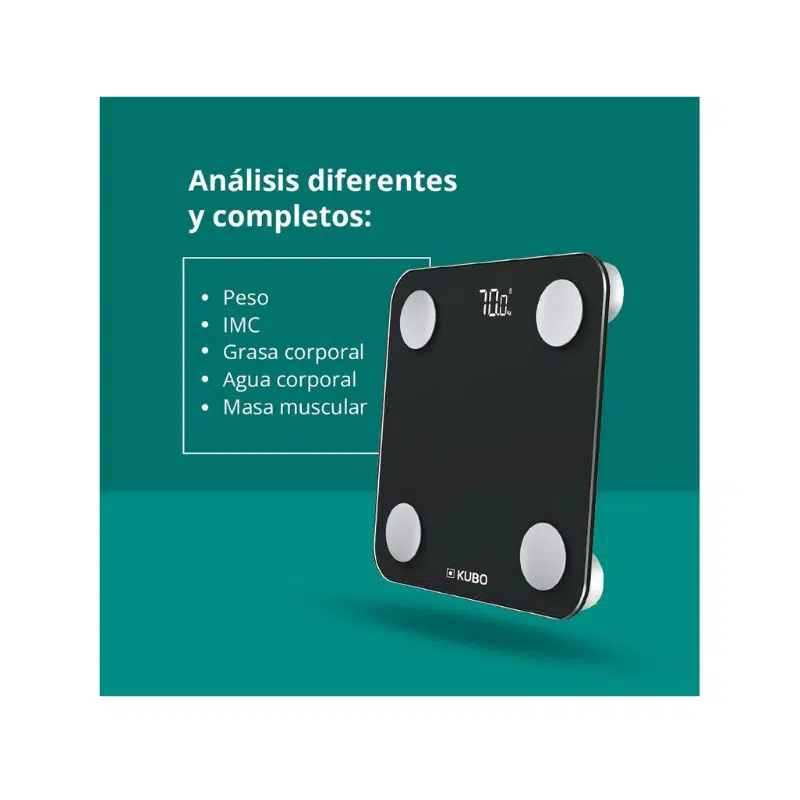 Su diseño moderno y elegante combina funcionalidad y estilo, con una superficie resistente que garantiza durabilidad y comodidad en cada uso. La KUBO KBSS7512 ofrece mediciones precisas y confiables, adaptándose a tus necesidades diarias y facilitando un seguimiento constante de tus objetivos de salud.