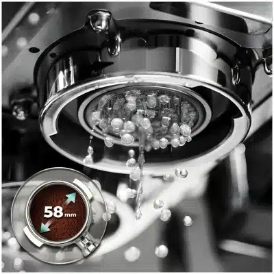 - Extrae todos los matices del café. Portafiltro profesional de 58 mm que retiene y distribuye el calor de manera uniforme para conseguir cafés perfectos.