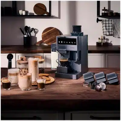 Freestyle Grind & Latte Cafetera de cápsulas con molinillo y depósito de leche.