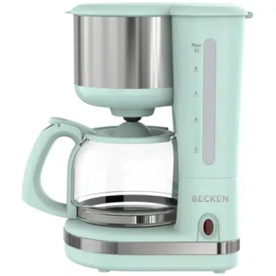 La cafetera Becken BDC877GCR en color verde combina diseño moderno y funcionalidad para preparar café de goteo con facilidad y calidad. Con una capacidad para hasta 12 tazas, esta cafetera es ideal para hogares, oficinas o pequeños espacios donde se desea disfrutar de un café fresco y aromático en cualquier momento del día.