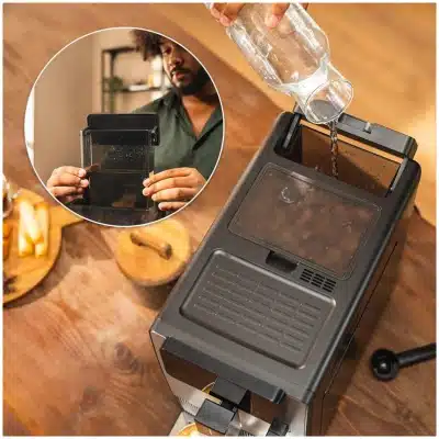 - Cappuccino perfecto con un clic. Depósito de leche de 400 ml para preparar cafés perfectos con leche y una textura cremosa.