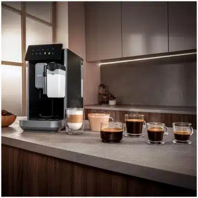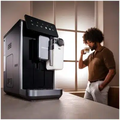 - Panel de control con gran pantalla y botones táctiles de colores: La experiencia de uso es intuitiva y moderna, gracias a su pantalla amplia y controles táctiles iluminados para seleccionar fácilmente tu bebida.
