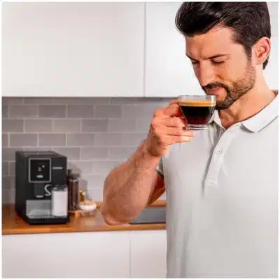 - Personaliza cada café. Controla la cafetera desde su pantalla TFT, elige tu bebida favorita en su menú o hazla a tu medida regulando la intensidad del café. Guarda tu configuración favorita y disfruta de cafés hechos a tu gusto con un solo clic.
