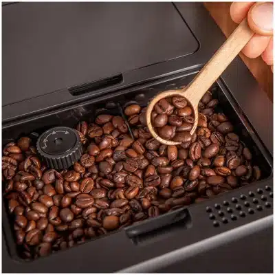 - Muele y conserva el café. La cafetera cuenta con un depósito de 150 g de café en grano con diseño hermético para mantener todo el aroma original. Además, dispone de un molinillo cónico integrado con 5 niveles de molienda para conseguir la textura ideal con cada variedad de café.