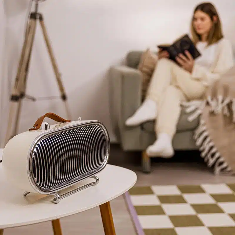 ReadyWarm 1500 Ceramic Retro. Calefactor cerámico de sobremesa con 1500 W, Diseño retro, termostato regulable y 2 modos de funcionamiento.