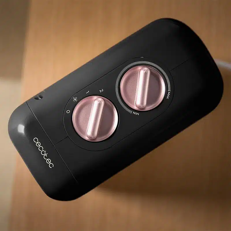 - Fácil control. 2 ruedecillas para seleccionar de manera intuitiva la potencia y el modo de funcionamiento, así como regular su termostato.