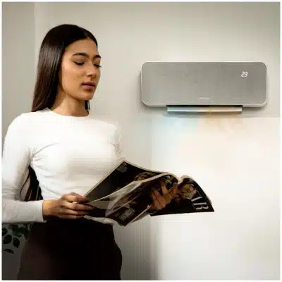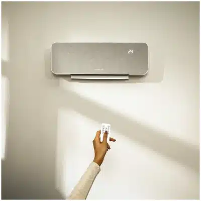 ReadyWarm 3000 Textile Calefactor de pared de 2000W, diseño en tela, pantalla LED, mando a distancia, temporizador y con lama oscilante.