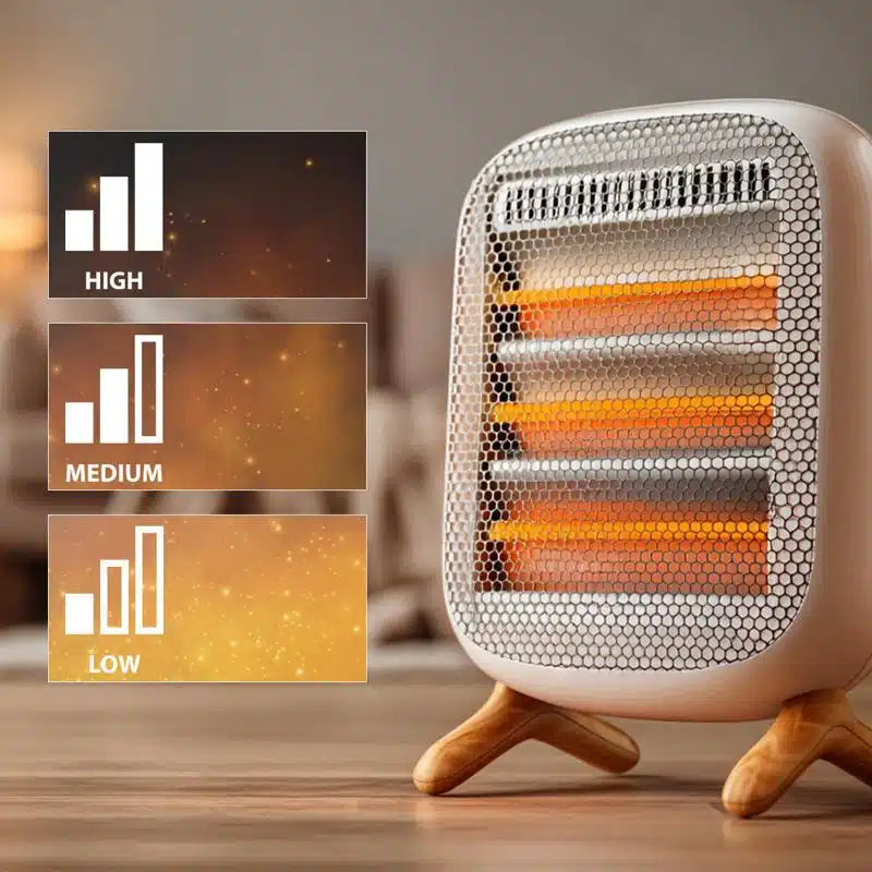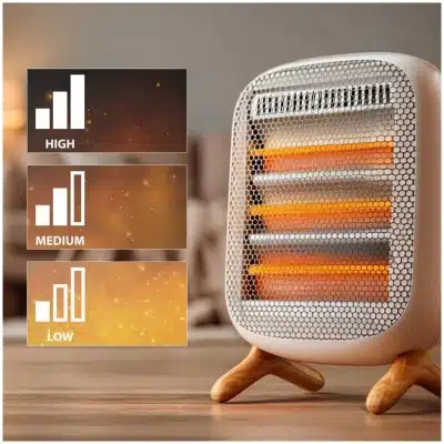 - Calor a tu medida. 3 niveles de calor: baja (400 W), media (800 W) y alta (1200 w). Esta flexibilidad te permite optimizar el consumo de energÃa y personalizar el confort térmico.