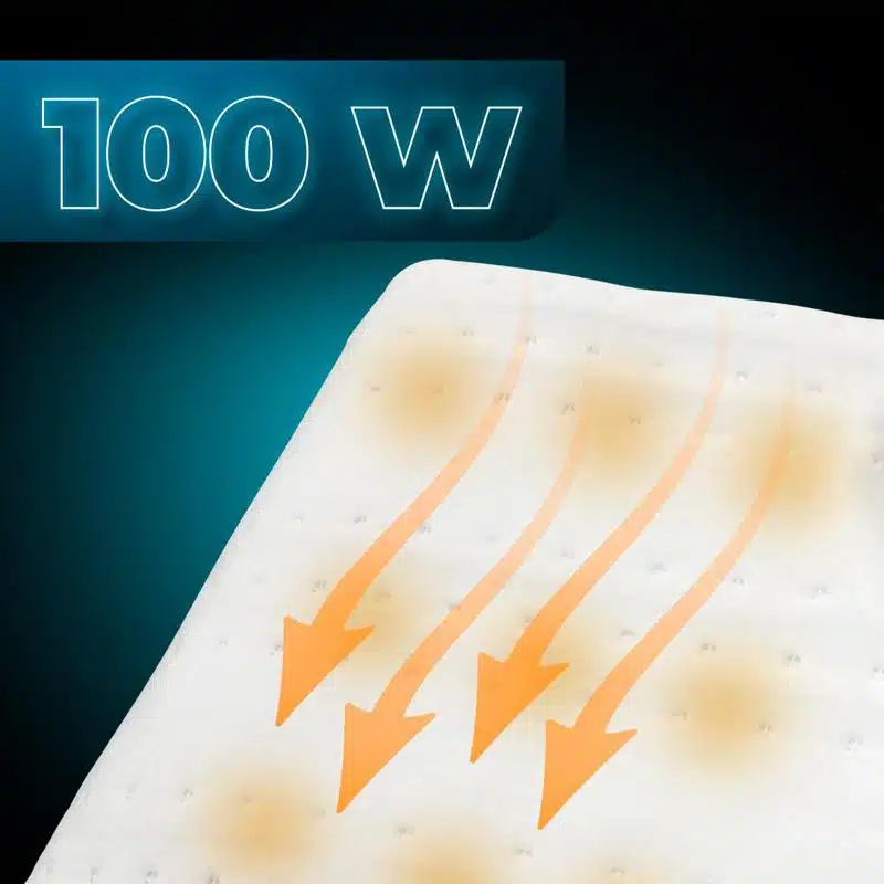 - Gran área de cobertura. Gracias a su tamaño de 150 x 80 cm podrás cubrir un mayor área y conseguir un agradable confort. Además, está fabricado con un cable extralargo para facilitar el movimiento y que puedas tumbarte de forma cómoda.