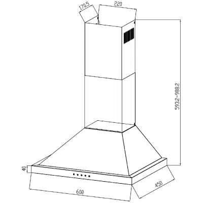 - TecnologÃa y diseño para tu cocina. Campana extractora piramidal de 60cm de ancho, que combina tecnologÃa avanzada y diseño sofisticado para cualquier cocina moderna.