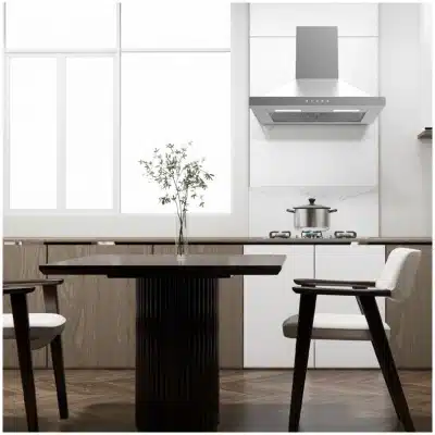 - Elegancia para tu cocina. Esta campana extractora en forma de Pirámide ofrece un diseño elegante y funcional que se convierte en el centro de atención de cualquier cocina, optimizando la extracción de humos y olores.