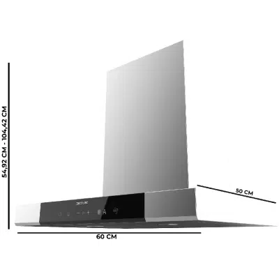 - Integración perfecta, cobertura total. Con un ancho estándar de 60 cm, se alinea a la perfección con tu placa de cocción, asegurando una absorción de humos óptima en toda la superficie y una estética equilibrada con el resto de tus muebles de cocina.