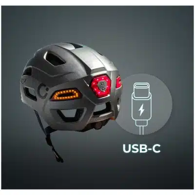 BrainGuard Flash S-M casco seguro y comodo sin comprometer el estilo, con intermitentes y luz trasera Bluetooth que se pueden activar desde el manillar. La luz frontal mejora la visibilidad nocturna. Fabricado con materiales ligeros y resistentes, el casco es ajustable a cualquier tamaño de cabeza. Además, la carga mediante cable USB-C asegura que tu casco esté siempre listo para la próxima aventura.
