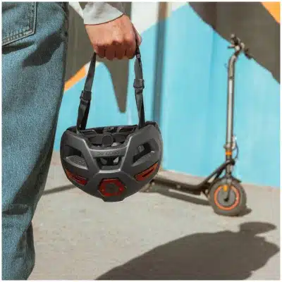 - Circula de forma segura. Intermitentes y luz trasera integrada para hacerte visible en la carretera. Además, las luces se activan desde el manillar para poder activarlos sin necesidad de levantar las manos.