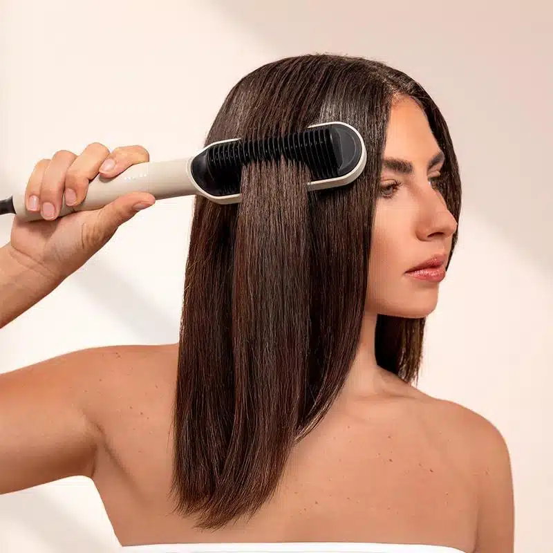 - Calor preciso, resultados uniformes. Gracias a su tecnologÃa de control térmico inteligente, mantiene la temperatura constante en toda la superficie del cepillo. Esto evita variaciones de calor y permite un acabado uniforme en cada mechón, desde la raÃz hasta las puntas. Chips inteligentes.
