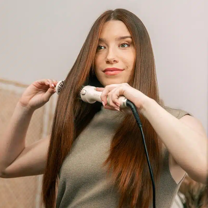 - Personaliza el calor. Con cinco ajustes de temperatura, de 140 a 210 ºC, según las necesidades de tu cabello, desde fino hasta grueso, asegurando un peinado eficaz sin comprometer la salud capilar.