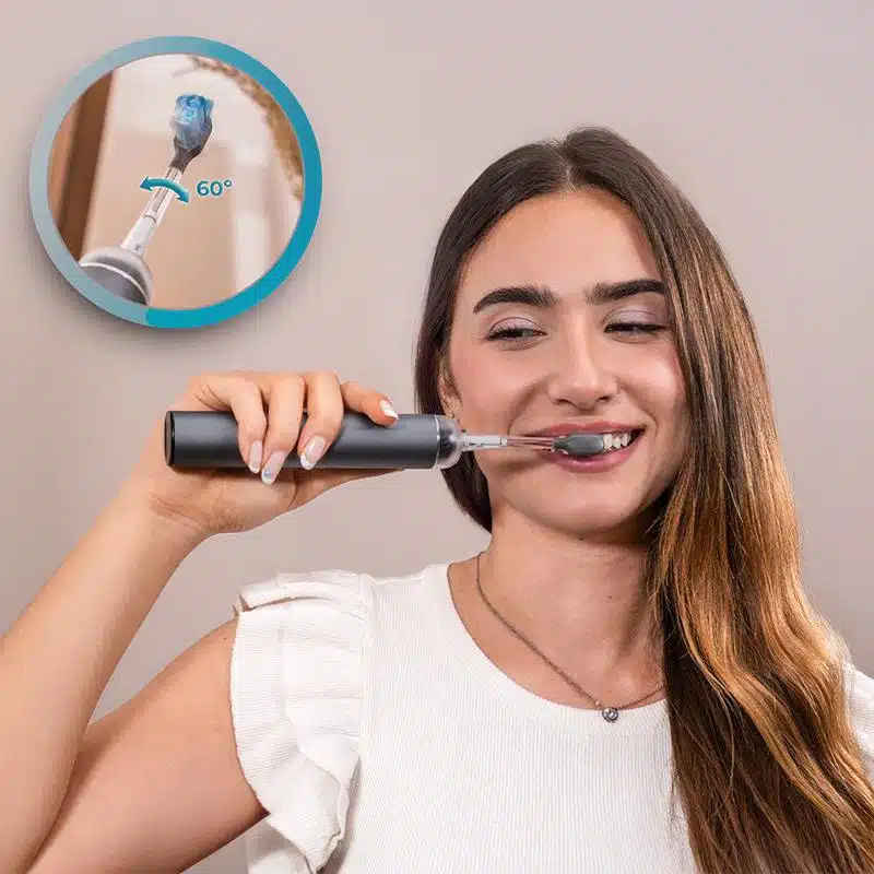 - Permite una limpieza más profunda y eficiente al llegar a zonas de difícil acceso, garantizando una eliminación de placa superior y una experiencia de cepillado más completa. Tecnología innovadora de oscilación de cabezal de 60º.
