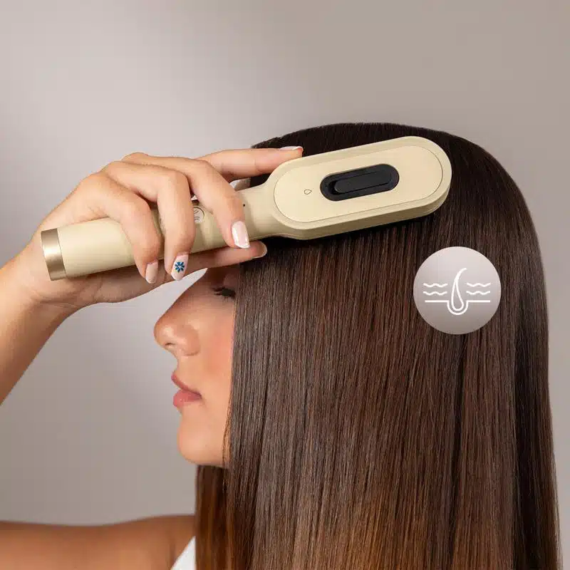 - Introduce tu producto capilar de confianza y deja que el cepillo se encargue de distribuirlo de forma homogénea por todo el cabello, mientras potencia su acción con luz LED y masaje para una rutina de cuidado perfecta. Aplicador de serum integrado.