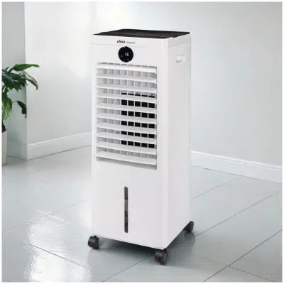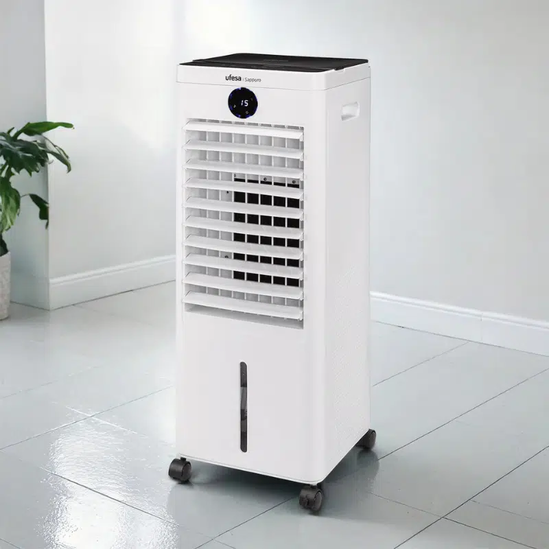El climatizador portátil Ufesa Sapporo 12L es una solución práctica y eficiente para refrescar estancias sin necesidad de instalación compleja. Diseñado con sistema de enfriamiento evaporativo, ofrece una alternativa cómoda al aire acondicionado tradicional, mejorando la sensación térmica en habitaciones, oficinas y espacios de hasta aproximadamente 30 m².