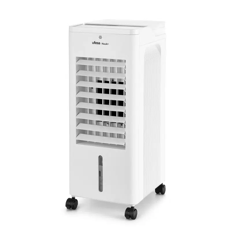 El Climatizador Ufesa Air Cooler Nuuk es un climatizador de aire portátil diseñado para ofrecer frescor y confort durante los dÃas de calor con un funcionamiento versátil y fácil de usar. Su sistema de enfriamiento combina funciones de refrigeración por agua, ventilación e ionización, lo que permite mejorar la sensación térmica de cualquier estancia sin necesidad de instalación fija.