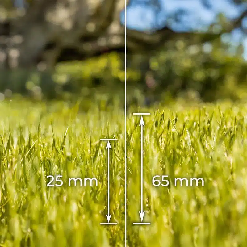 • Cortes a medida, acabados perfectos. Altura de corte ajustable en 3 posiciones (25, 45 y 65 mm), ideal para adaptarse a tus necesidades y lograr un resultado excelente de tu césped.