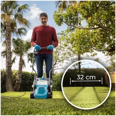 • Más terreno en menos tiempo. Ancho de corte de 33 cm perfecto para jardines medianos y pequeños.