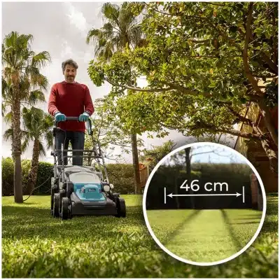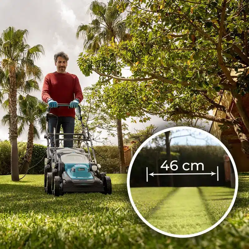 • Cubre más terreno en menos tiempo. Ancho de corte de 46 cm perfecto para jardines grandes.