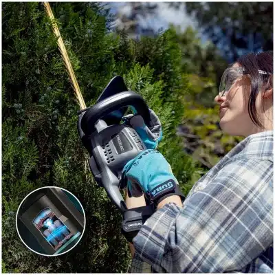 • Corta de todo con máxima precisión. Cuchillas cortadas con láser y con recubrimiento de titanio para mejorar la dureza y mantener el afilado por más tiempo. Evita que la resina de las ramas se pegue y facilita su limpieza.
