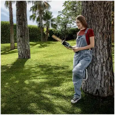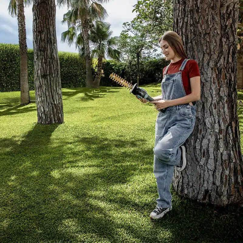 - Maximiza su potencia y durabilidad. Su motor Brushless, sin escobillas hace que este cortasetos tenga una mayor vida útil asegurando así un uso óptimo día tras día.
