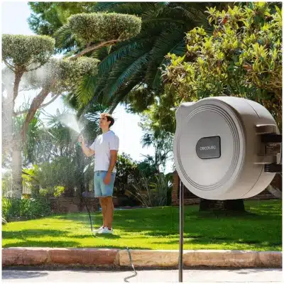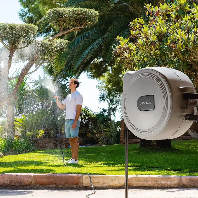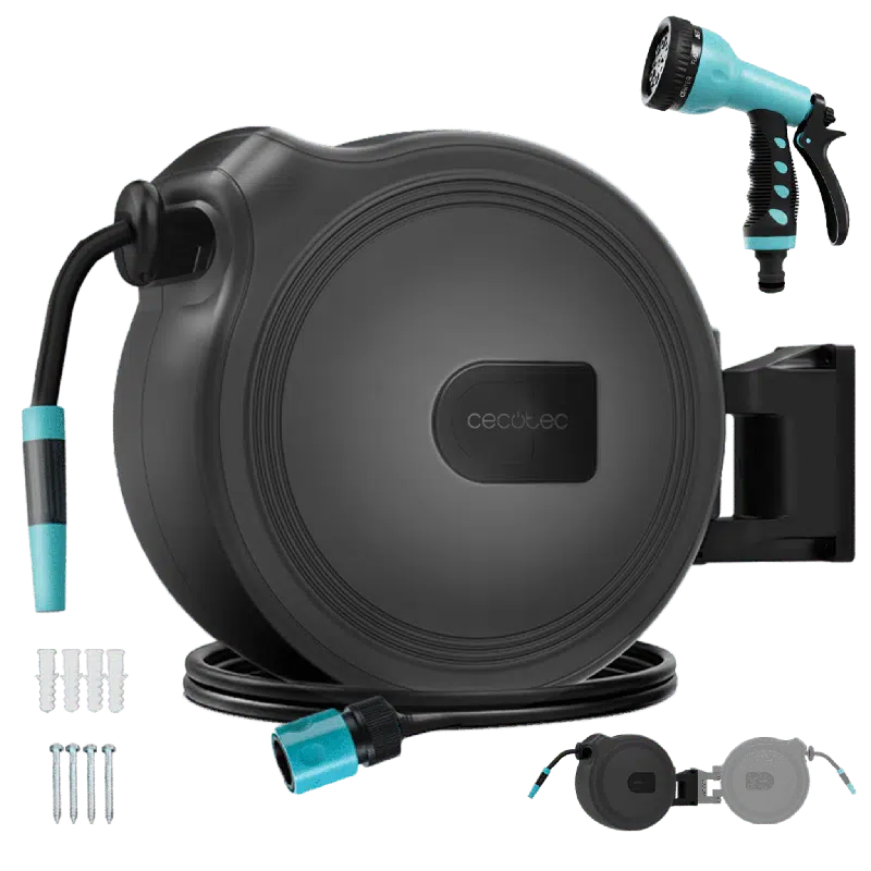 - Organización y protección. Sistema de enrollado y tambor de plástico que evita el desorden y el daño en la manguera por condiciones climáticas.