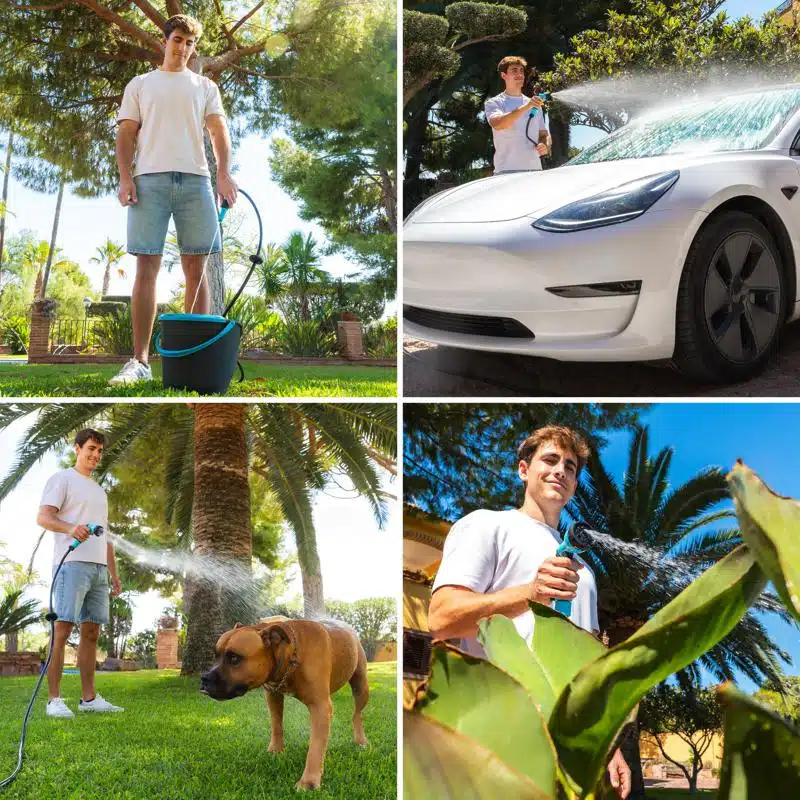 - Precisión y versatilidad. Adapta la presión y el tipo de salida del agua con las 8 funciones de la pistola pulverizadora.
