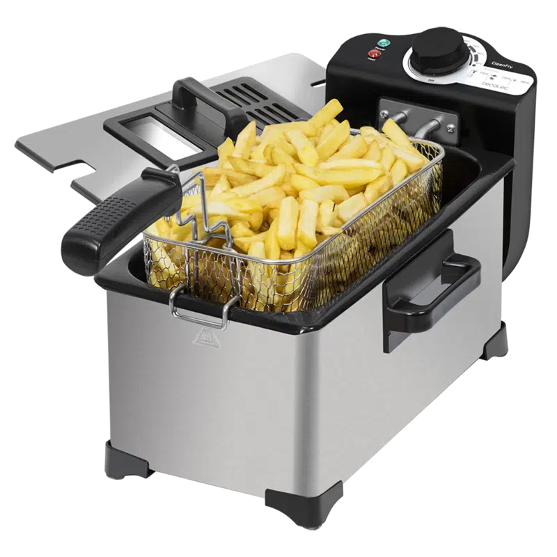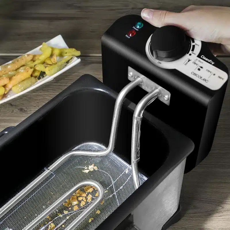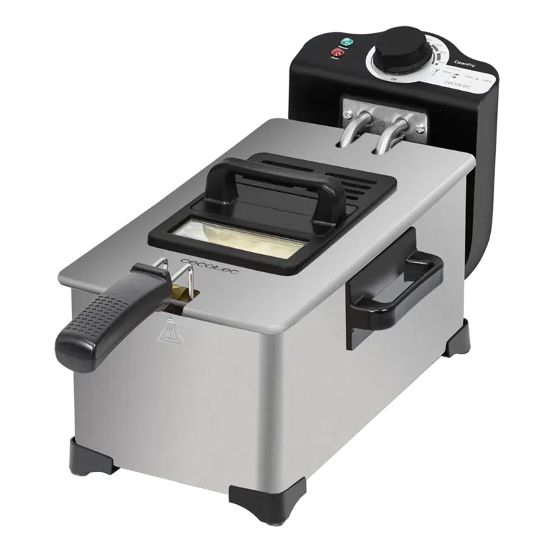 Freidora eléctrica 3 litros de acero inoxidable con filtro OilClean que mantiene el aceite limpio. 2000 W de potencia. 3 litros de capacidad. Tapa con ventana y filtro antiolores. CleanFry 3 L de Cecotec.