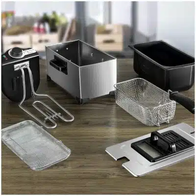- Â Â Â Tapa de acero con filtro antiolores y ventana para controlar el proceso de fritura.