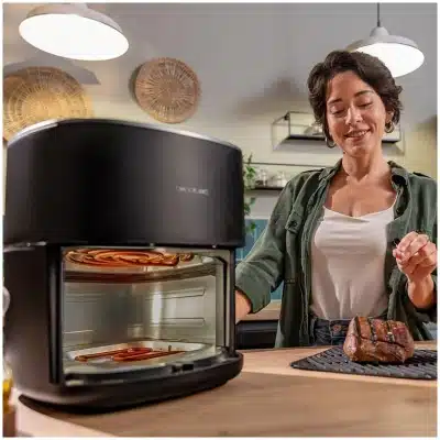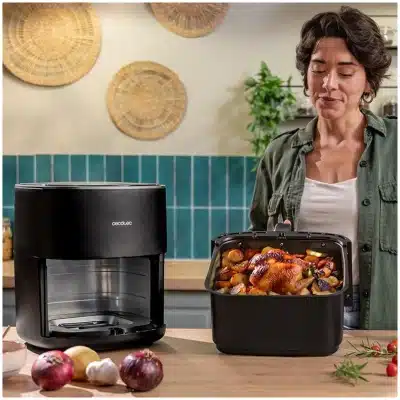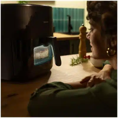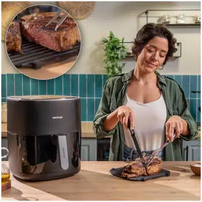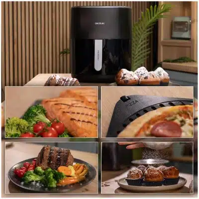 - 3 en 1: cocina todo tipo de platos. Cocina de todo con tu Cecofry gracias a su diseño que incorpora freidora de aire, grill para carne y plancha para prepara pizzas con masas perfectas.