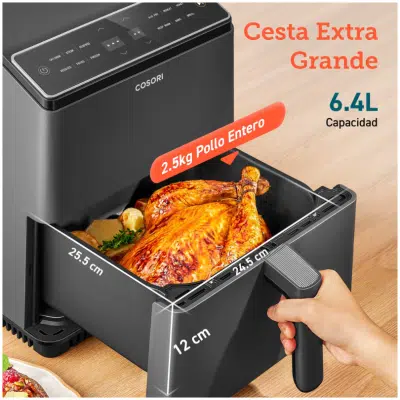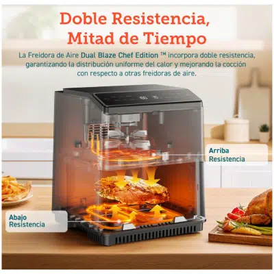 La Cosori Dual Blaze Chef Edition 6,4L es una freidora de aire potente, versátil y eficiente, pensada para quienes desean optimizar su tiempo en la cocina y disfrutar de platos más saludables con resultados profesionales.