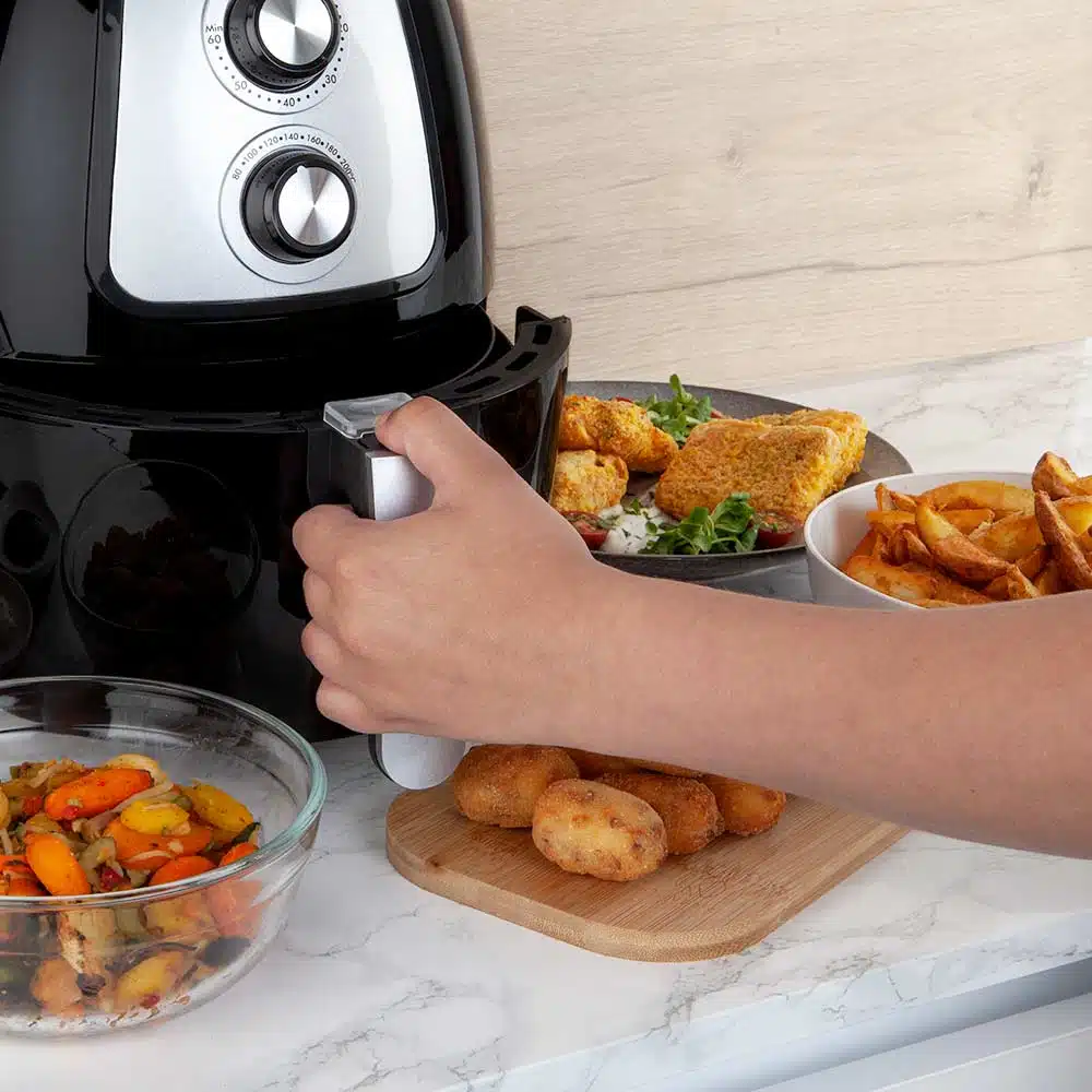 Este modelo permite cocinar una amplia variedad de alimentos como patatas fritas, alitas de pollo, verduras, carnes, pescado e incluso postres y reposterÃa. Su sistema de circulación de aire caliente proporciona una cocción uniforme sin necesidad de añadir grandes cantidades de aceite.