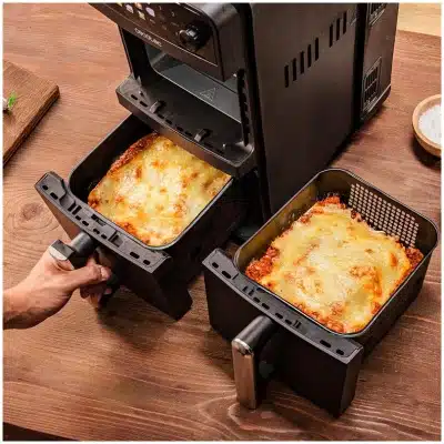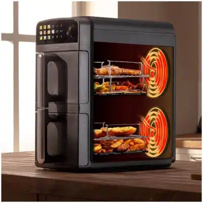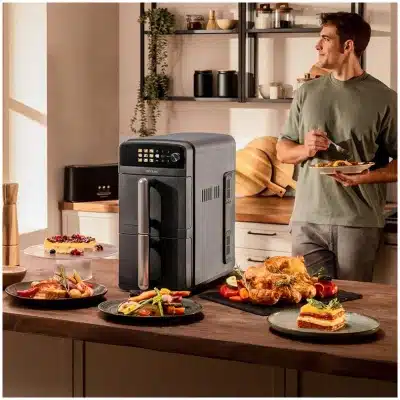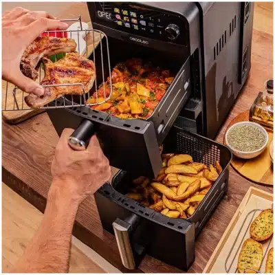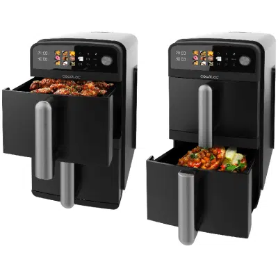 Cecofry DuoLevel 10000 Freidora de aire de 10L con cubetas superpuestas de 5L, 2400 W de potencia, control táctil, y 6 programas preconfigurados para una cocción rápida y saludable.