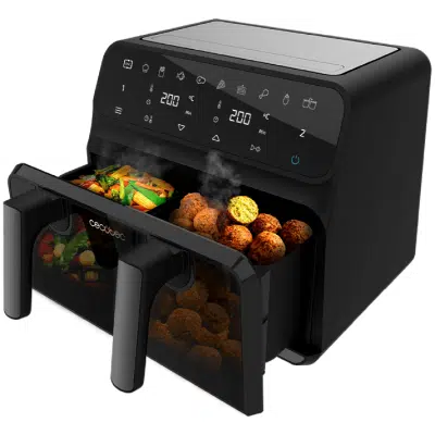 Cecofry Advance 9000 Window Freidora dietética digital de 9 L de capacidad con pared divisoria móvil, temperatura dual, ventana y tecnología PerfectCook.