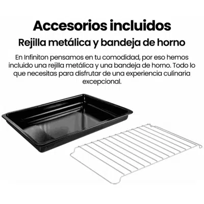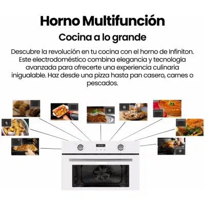 El horno multifunción Infiniton 40ACW0 de 2800W está diseñado para ofrecer máximo rendimiento, versatilidad y precisión en la cocina. Gracias a su alta potencia y a sus múltiples funciones de cocción, permite preparar desde recetas sencillas hasta elaboraciones más complejas con resultados homogéneos y profesionales.