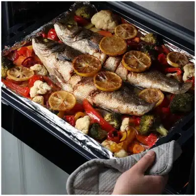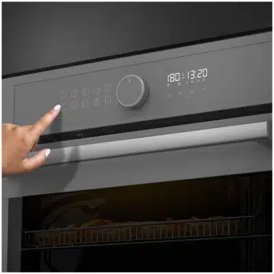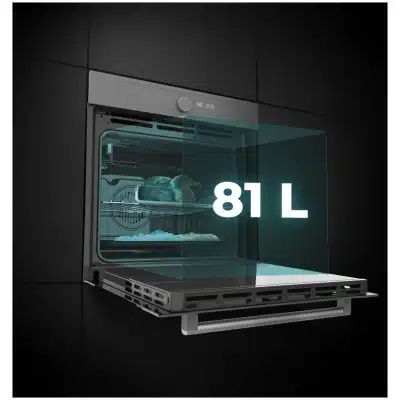 - Cocina varias recetas a la vez: el horno cuenta con una capacidad de 81 L con guías telescópicas y 5 posiciones para que puedas cocinar diferentes recetas a la vez o una sola con la precisión de la alta cocina.