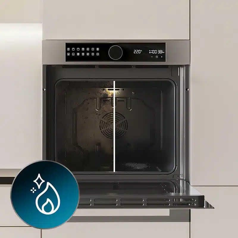 - Pirólisis: gracias a su proceso de limpieza en el que se descomponen los restos de suciedad dentro del horno por medio del calor, limpiarás tu horno de la forma más sencilla.