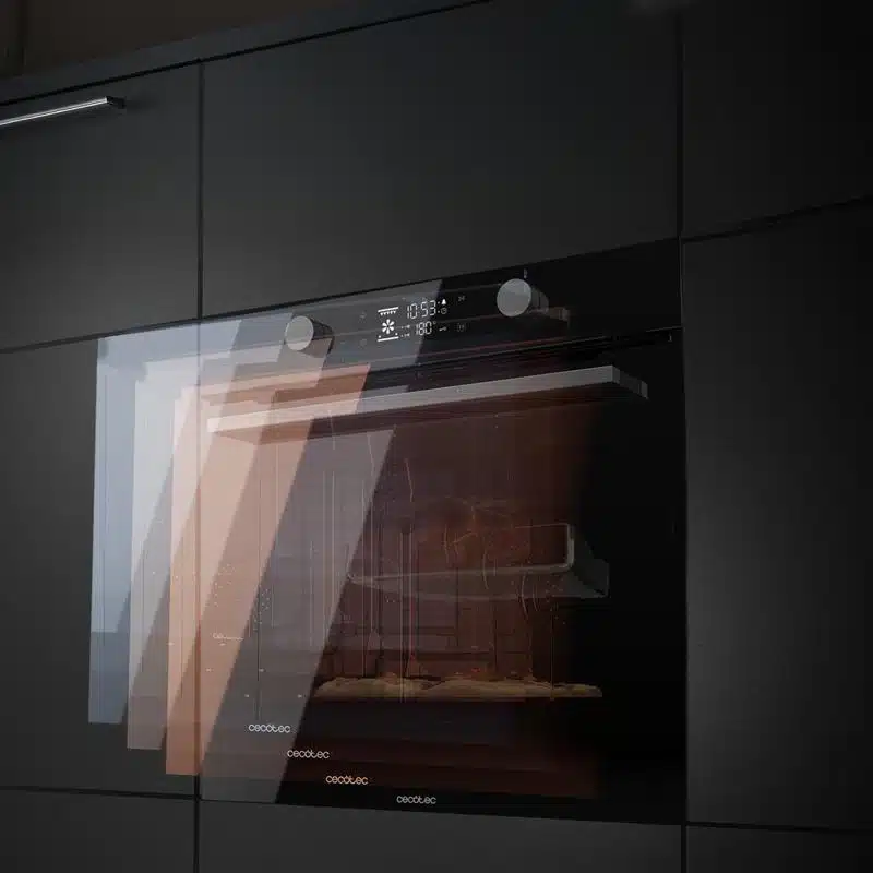 Su puerta con cuatro cristales mejora el aislamiento térmico, aumenta la eficiencia y reduce el calentamiento exterior, aportando mayor seguridad durante el uso. Todo ello se combina con un diseño integrable y un elegante acabado Glass Black, que se adapta perfectamente a cocinas contemporáneas.