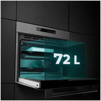 - Cocina varias recetas a la vez: el horno cuenta con una capacidad de 72 L con guías telescópicas y 5 posiciones para que puedas cocinar diferentes recetas a la vez o una sola con la precisión de la alta cocina.