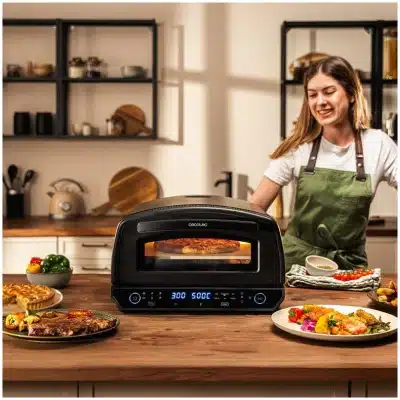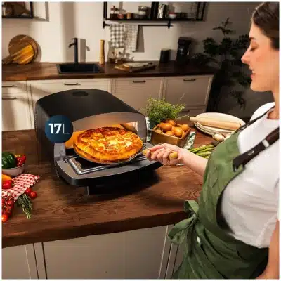 Pizza&Co 500 Max Horno para pizza multifuncional de 17L con control digital, amplio rango de temperatura, ahumado, y accesorios.