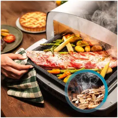 • Recetas gourmet en casa. Función de ahumado con virutas de madera para darles a tus recetas un sabor distintivo y auténtico.