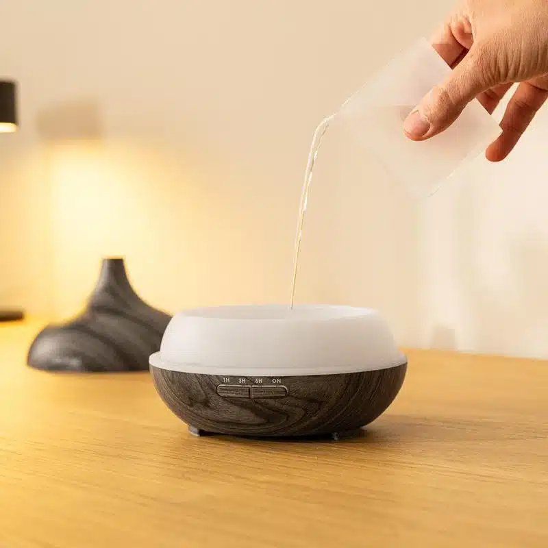 - Estilo que se adapta a ti. Con su elegante diseño en color madera, este humidificador se integra perfectamente en cualquier rincón de tu hogar, aportando un toque de naturalidad y frescura.